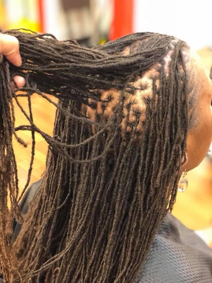 Gifted Hands by Sheena offers various services: Locs/Styles, Natural Styles, Trims, Cuts, Color, minimal extension services, maintenance, and repair.